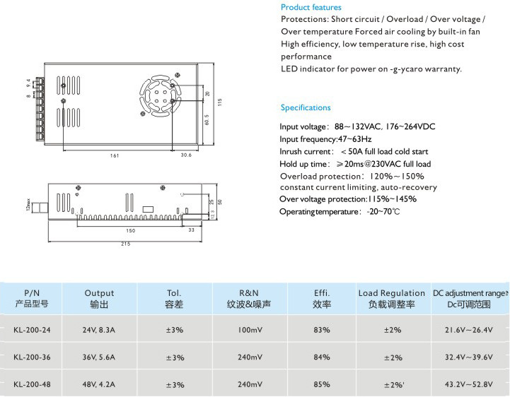 高效率、低溫升、高性?xún)r(jià)比 適用于LED顯示、工業(yè)控制 輸入電壓:88-132VAC,176-264VAC 輸入頻率:47~63Hz 沖擊電流:<50A滿(mǎn)載冷態(tài) 保持時(shí)間:≥20ms@230VAC滿(mǎn)載 過(guò)載保護(hù):120%-150%自動(dòng)恢復(fù)限;限流保護(hù),自動(dòng)恢復(fù) 過(guò)壓保護(hù):115%~145% 運(yùn)行溫度:-20-70℃" />